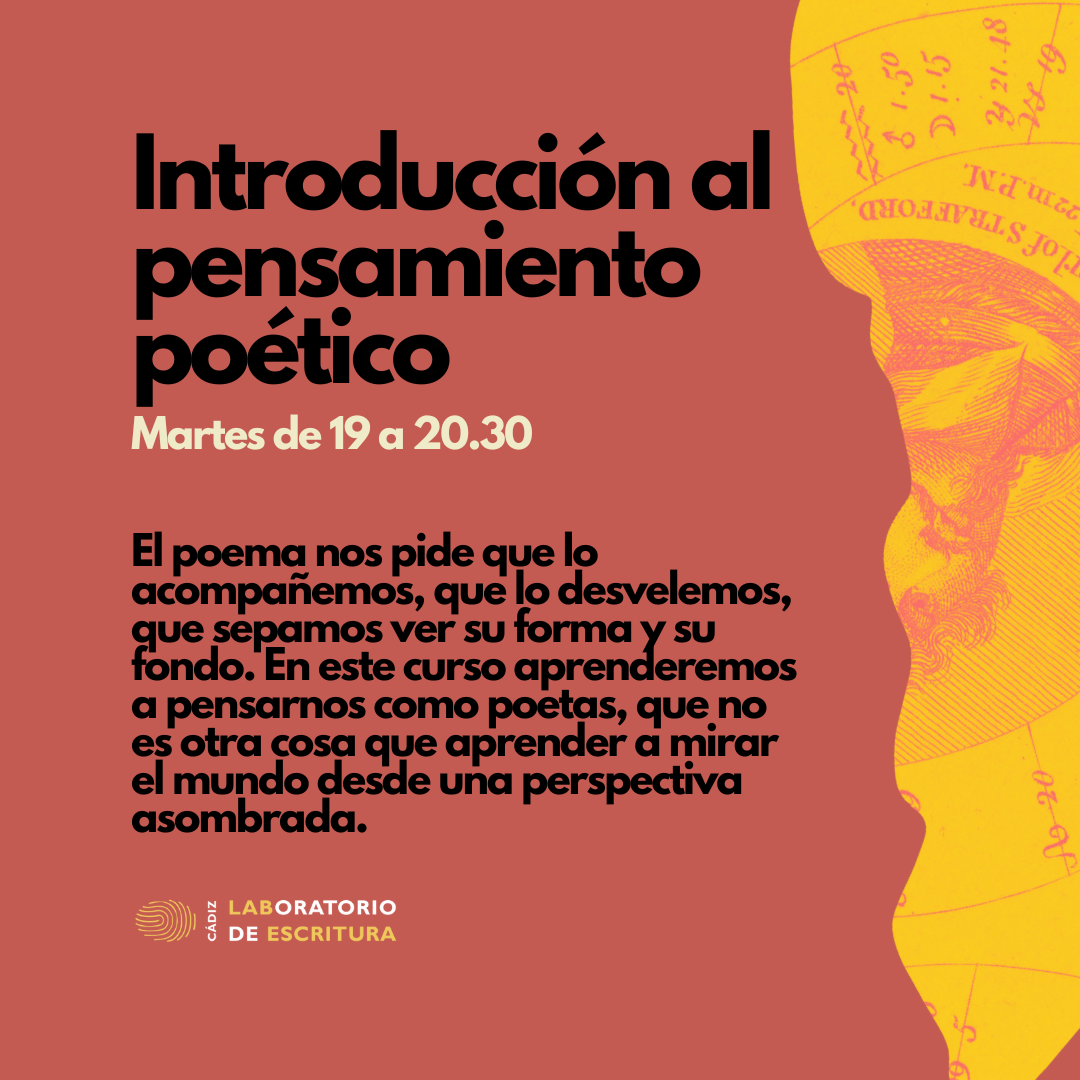 Escribir un poema no es solo decantar el lenguaje. Consiste en ir siempre más allá, un paso más allá, hasta abismarnos. El poema es sentido y emocionalidad pero, sobre todo, es pensamiento organizado. Él nos pide que lo acompañemos, que lo desvelemos, que sepamos ver su forma y su fondo. En este curso aprenderemos a pensarnos como poetas, que no es otra cosa que aprender a mirar el mundo desde una perspectiva interna.